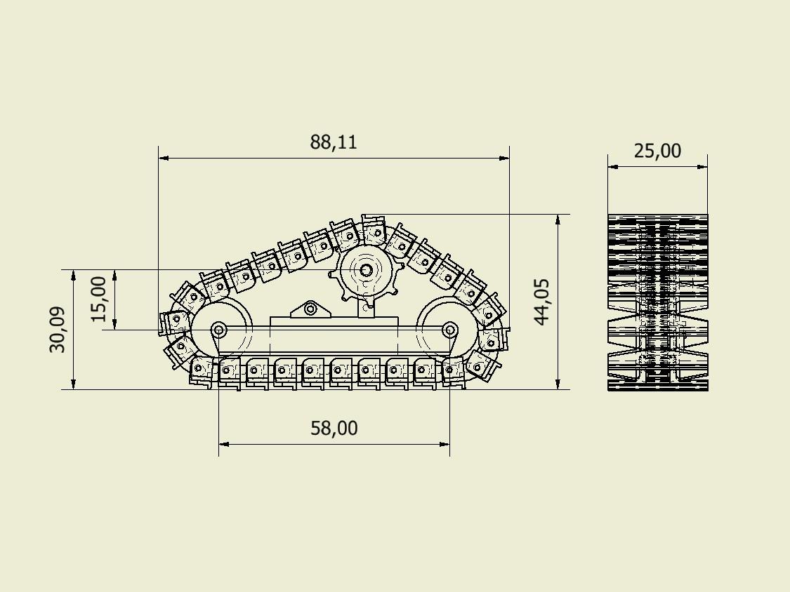 Ce kit au 1/32ème  vous permettra d'équiper une moissonneuse, une ensileuse ou tout autre machine de votre choix, avec train de chenille en acier. Idéal pour avancer des les conditions difficles, la chenille est fonctionnelle et tourne autour de ses galets.