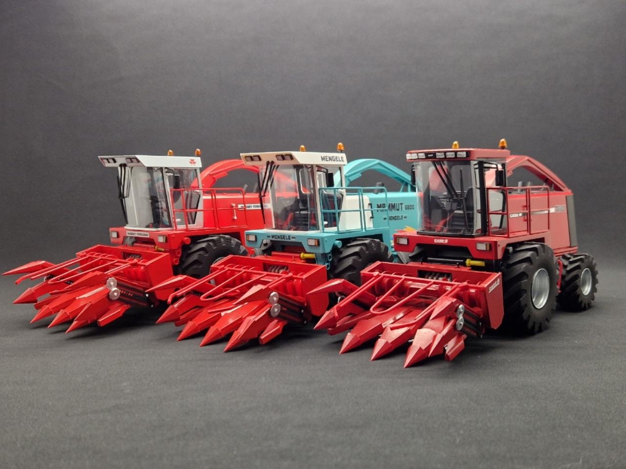 Étape suivante, la version Mengele. C'est la même machine, mais le toit de cabine est différent. La peinture des capots est également bien spécifique. Plutôt que de faire les mêmes capots que la Case et jouer avec des papiers cache pour obtenir les différentes couleurs, je vais changer un peu la conception des capots pour essayer au maximum d'avoir des pièces d'une seule et même couleur. À coté de sa cousine, ça rend vraiment pas mal!